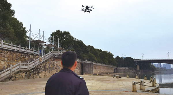 执法人员控制巡检无人机检查沿河的非法捕鱼活动。“请注意!一人多杆,您已违反禁渔规定,请您立即停止违规垂钓行为!”12月1日下午,一架无人机在河滨起...